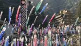 杖立鯉のぼり祭りが始まった3月28日、落語などのステージが楽しめるマルシェが開催されました。このマルシェは、去年開催された「癒しのマルシェ」の仕掛け人・國津さんが中心となって開催し、川岸テラスに作られた特設ステージでは、落語だけではなく歌や踊りが披露されていました。噺家の二人はこの春それぞれの地元に帰られるとのことで、その前にもう一度杖立温泉で!と今回のイベント開催に至ったようです。