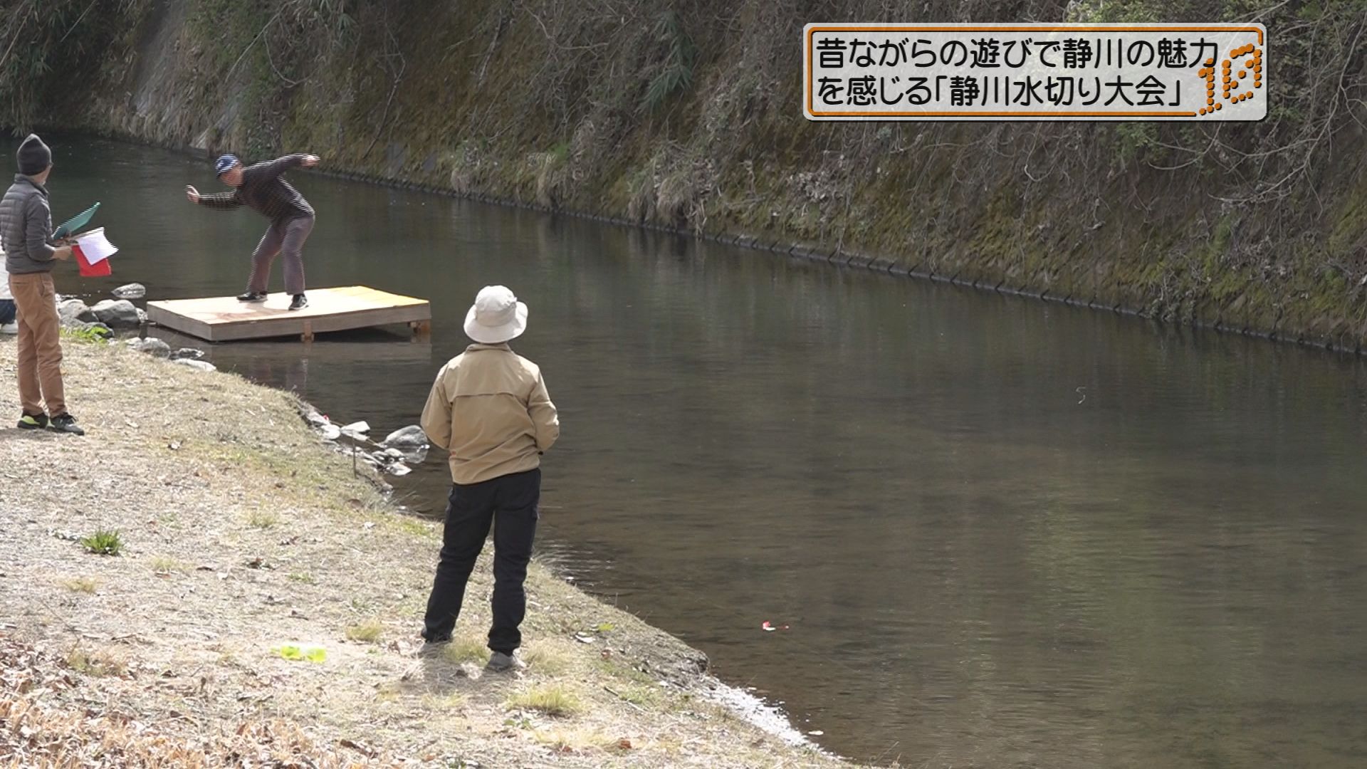 3月22日、宮原の富くじ六花園下川原で「第2回静川水切り大会」が開催され、町民を中心に22人が参加しました。昔ながらの水切りを通じて世代を超えた交流を深めることを目的に行われ、友人や家族連れなどでにぎわいました。参加者は石選びや投げ方を工夫し、跳ねるたびに歓声が上がるなど終始和やかな雰囲気に包まれました。競技は石が跳ねた回数と距離で得点を競い、各部門で白熱した戦いが繰り広げられました。